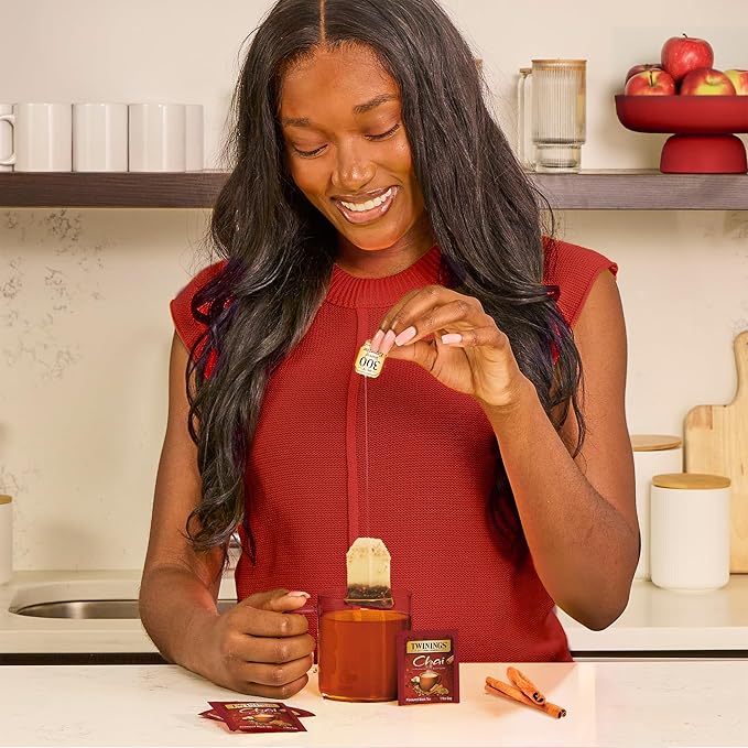 Twinings Chai Black Tea Individually Wrapped Bags, 20 Count (Pack of 6), Sweet, Savoury Spices, Caffeinated, Enjoy Hot or Iced, 120 Teabags