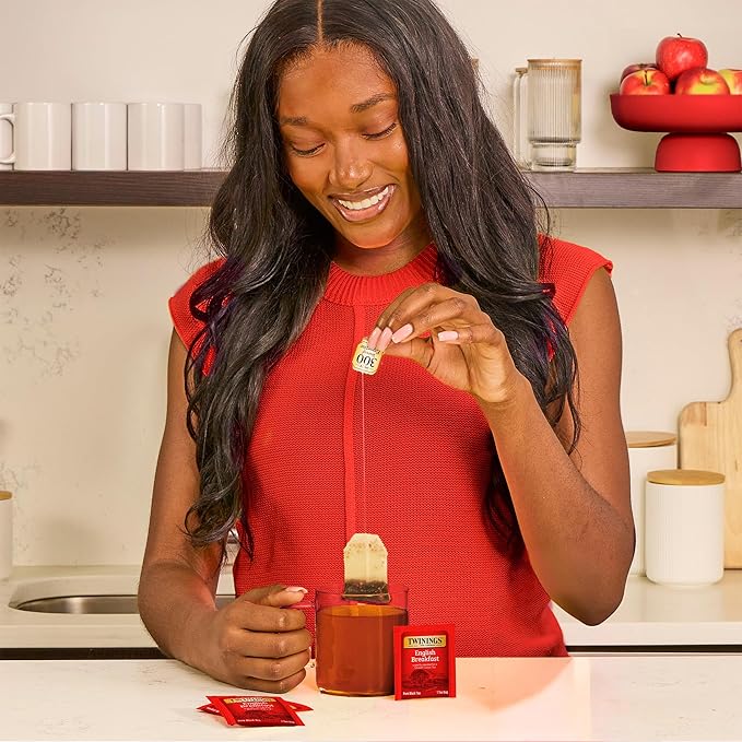 Twinings English Breakfast Black Tea Individually Wrapped Bags, 100 Count (Pack of 1), Smooth, Flavourful, and Robust, Caffeinated, Enjoy Hot or Iced, 100 Teabags