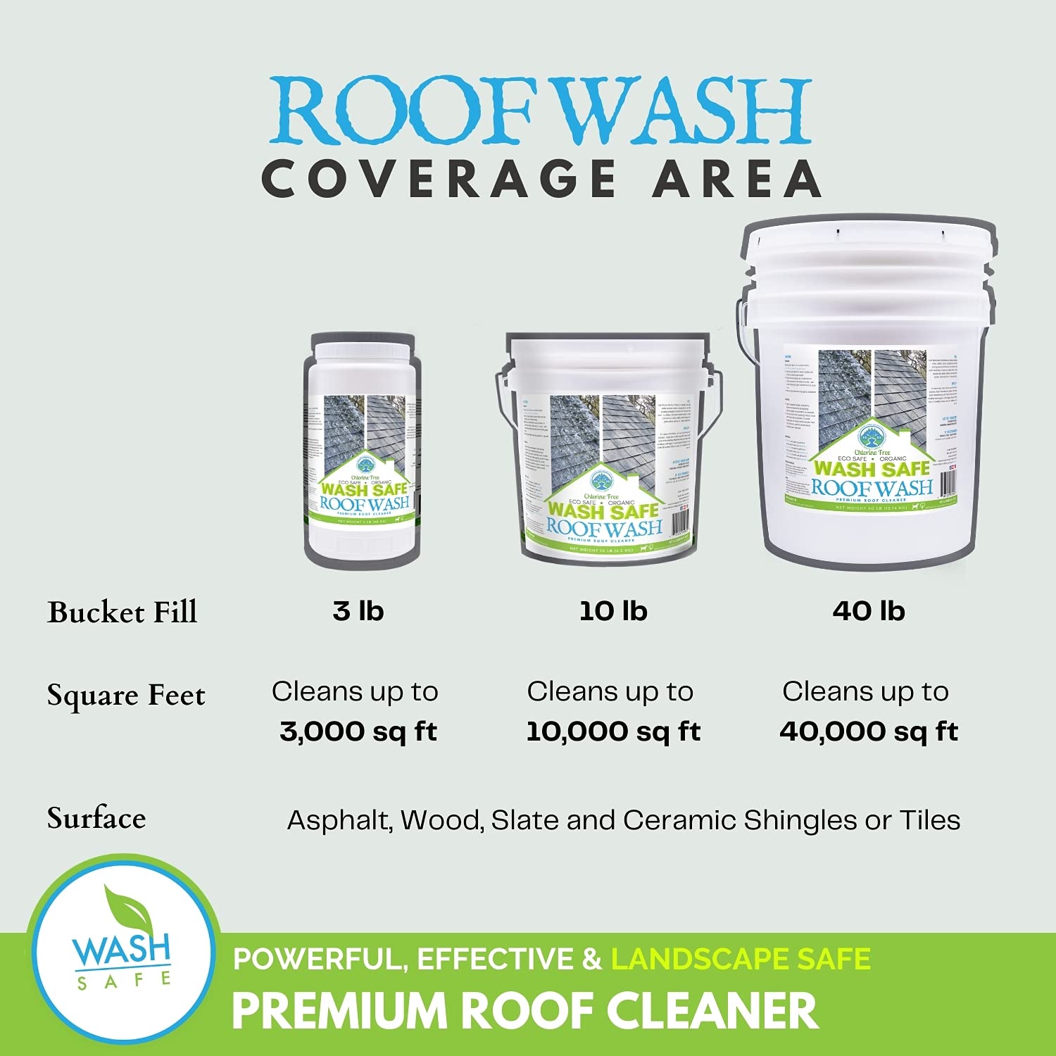 Wash Safe™ ROOF WASH Eco-Safe and Organic Roof Cleaner, 3 lb. | Clear, Bleach-Free Concentrate | Clean Up to 3,000 sq. ft. of Asphalt, Wood, Slate and Ceramic Shingles or Tiles