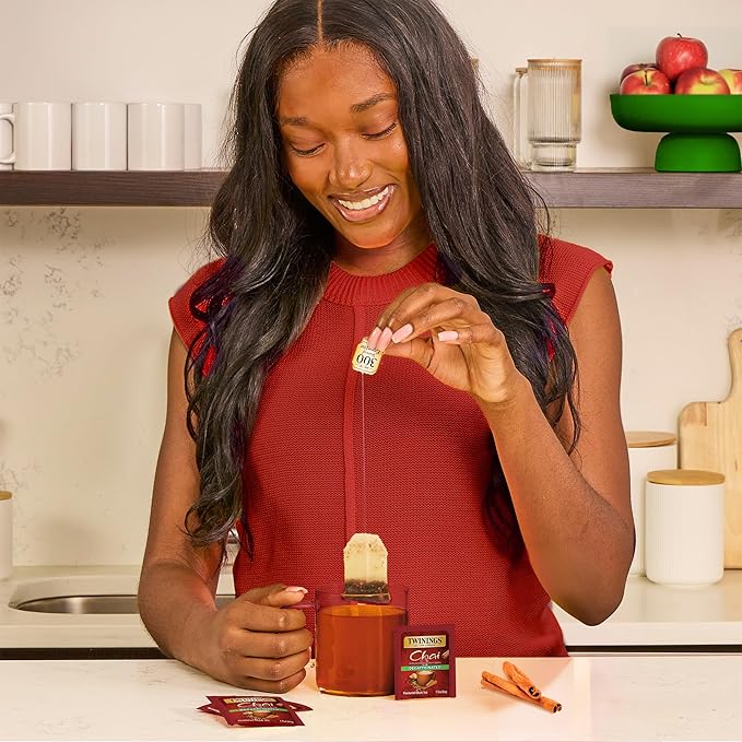 Twinings Decaffeinated Chai Individually Wrapped Bags, 20 Count (Pack of 6), Sweet, Savoury Spices, Enjoy Hot or Iced, 120 Teabags