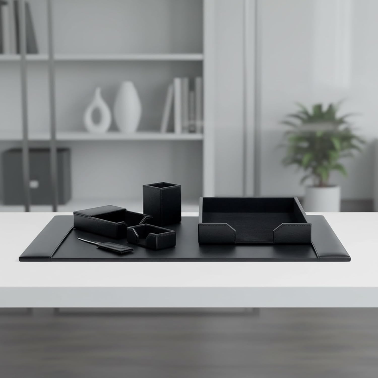 Dacasso Bonded Leather Desk Set - Luxury Leather Desk Pad & Desk Organization Essentials (Black, 6 Piece)