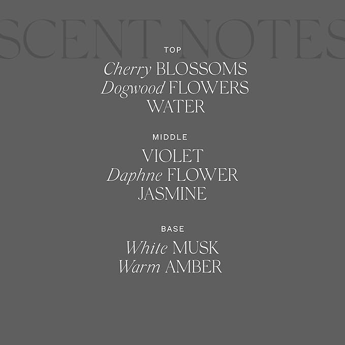 - Spring in Japan: This fragrance evokes canopies of cherry blossoms, sculptural dogwood branches, flowering Daphne Odora and fresh water droplets