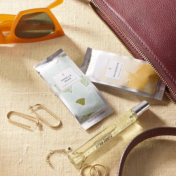 Tea Forte Single Steeps Loose Leaf Tea Sampler, Assorted Variety Tea Box, 15 Single Serve Pouches (Herbal Retreat)