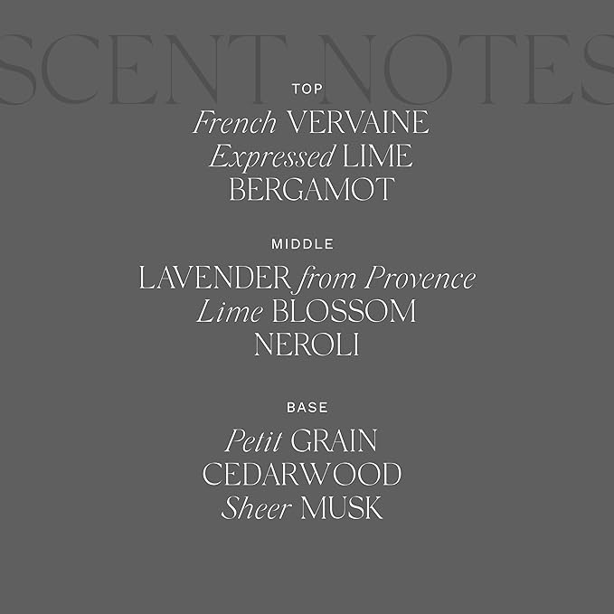 - Sophistication & Sparkle: This scent infuses notes of French vervain and Provence lavender with a kick of tart lime blossom; accents of neroli, petitgrain and cedarwood add an earthy complexity