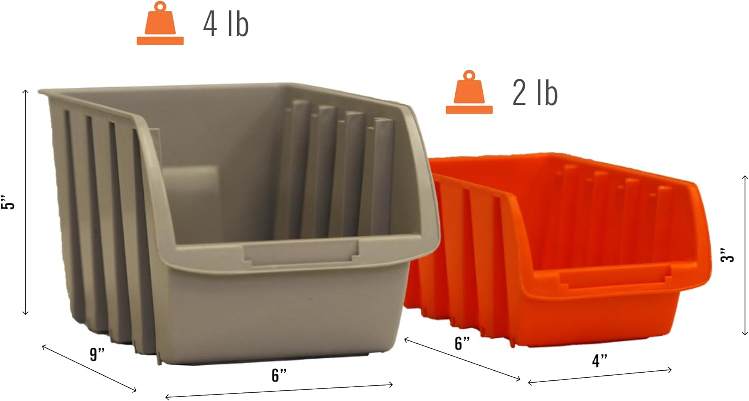 - EASY, NO-TOOL ASSEMBLY: No tools are required for assembly, which can be completed in as little as 20 minutes; Includes 1 Bin Rack, 64 Orange Plastic Bins, 30 Gray Plastic Bins, and 4 Wheels; Box Weight 71 pounds