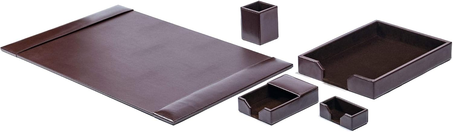 Dacasso Bonded Leather Desk Set - Luxury Leather Desk Pad & Desk Organization Essentials - Office Organization & Executive Desk Decor - (Dark Brown, 5 Piece)