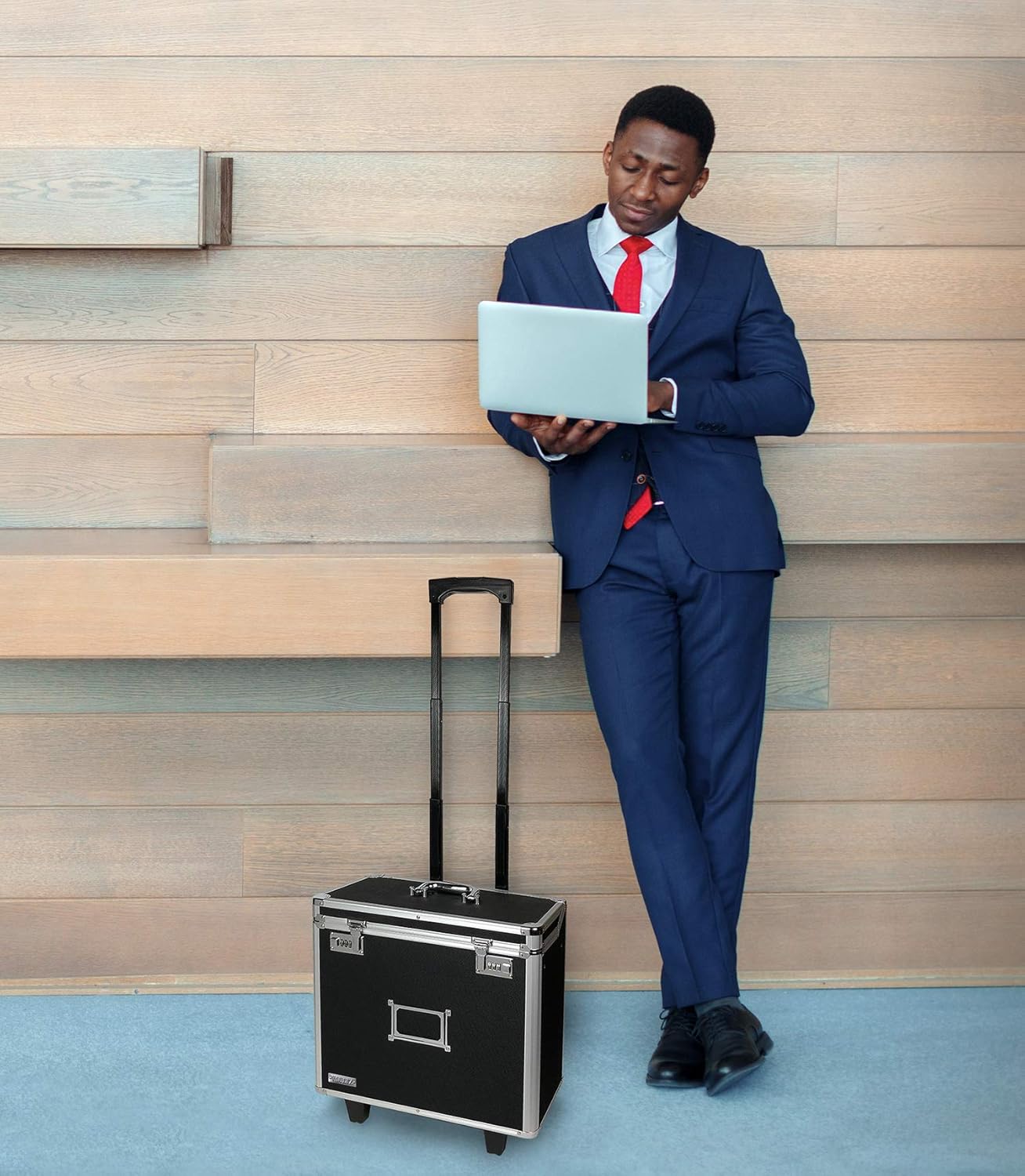 - Tough Wheels - Our locking storage chest is equipped with sturdy wheels and a telescoping handle so you can transport even heavy files quickly and easily
