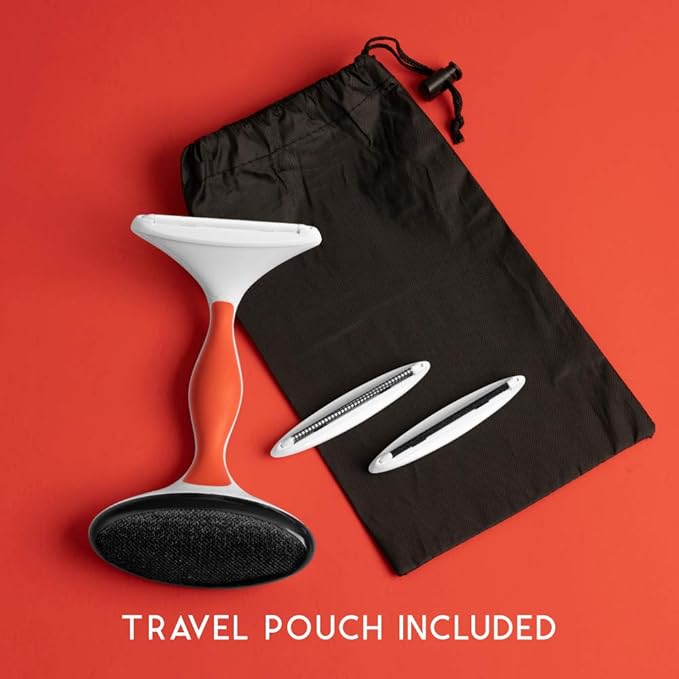 - INCLUDES: Ergonomic handle with soft overmolded grip, integrated lint brush, 3 fabric safe edges, and drawstring travel pouch