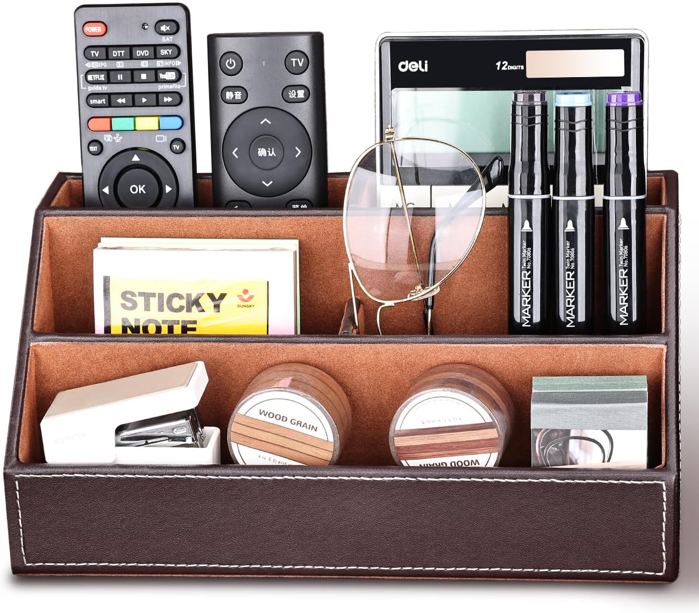 - HIGH-GRADE DESK ORGANIZER: Surface is made of high quality PU leather, interior and bottom are made of soft flannel, easy to clean.(Can only be wiped with a damp cloth)