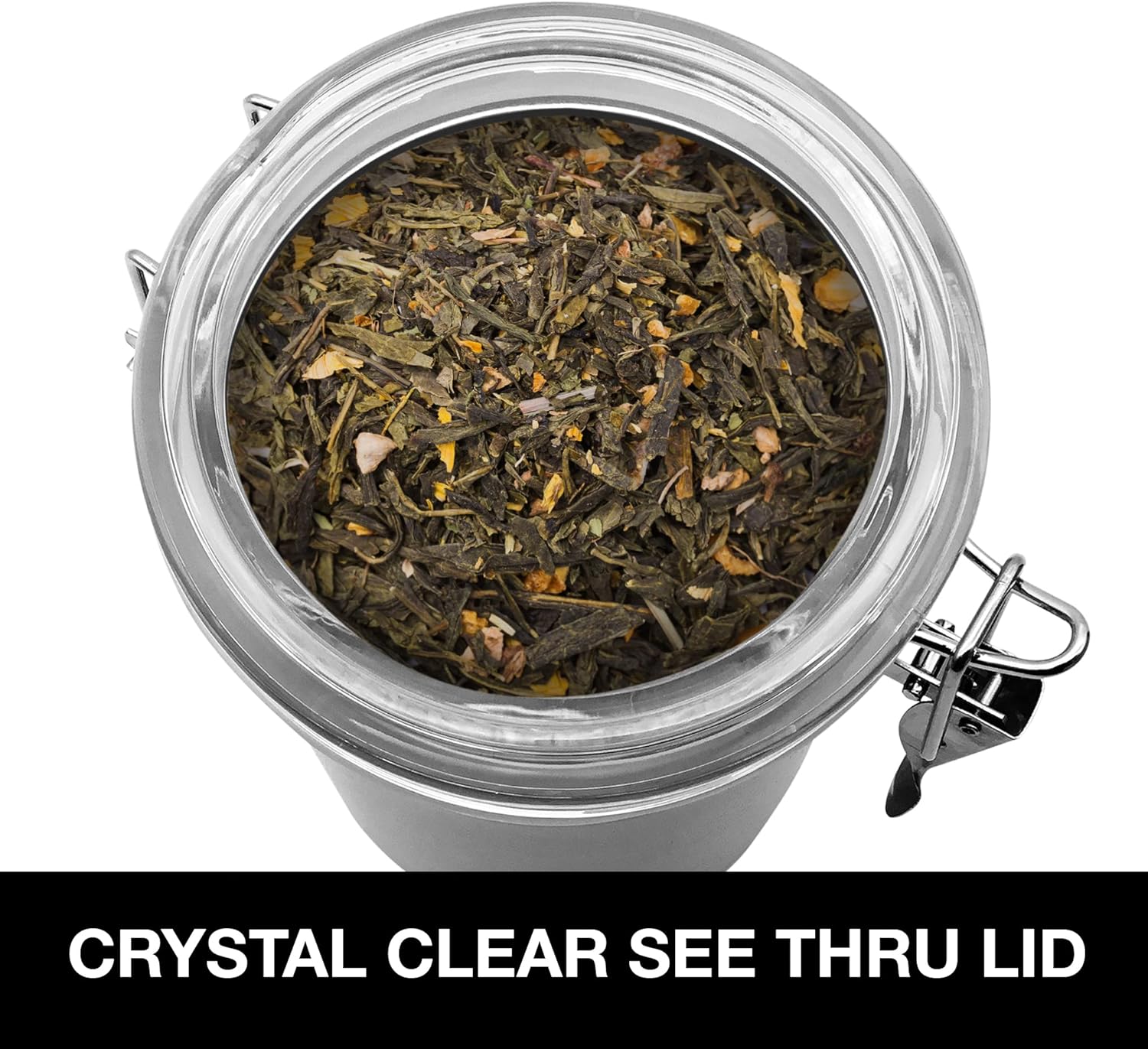- AIRTIGHT & SEE-THRU LIDS: Clear lids enable you to see the loose tea leaves or tea bags which are kept fresh and dry due to the silicone gaskets and locking clamps.