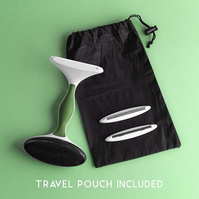 - WHAT’S INCLUDED – Gleener Fabric Shaver & Lint Brush with ergonomic handle, 3 fabric-safe interchangeable edges, integrated lint brush, and travel pouch.
