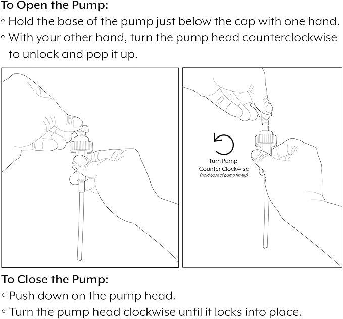 - LOCKABLE PUMPS: Pumps twist and lock for easy closure for transport or storage.