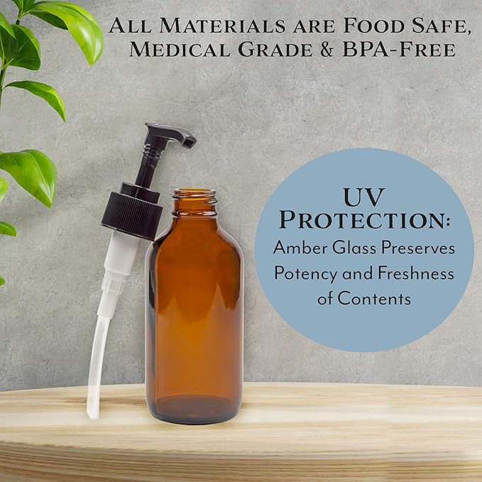 - SAFE: Amber lead-free heat-resistant glass. BPA-free plastic pump tops. Food safe. Medical grade.