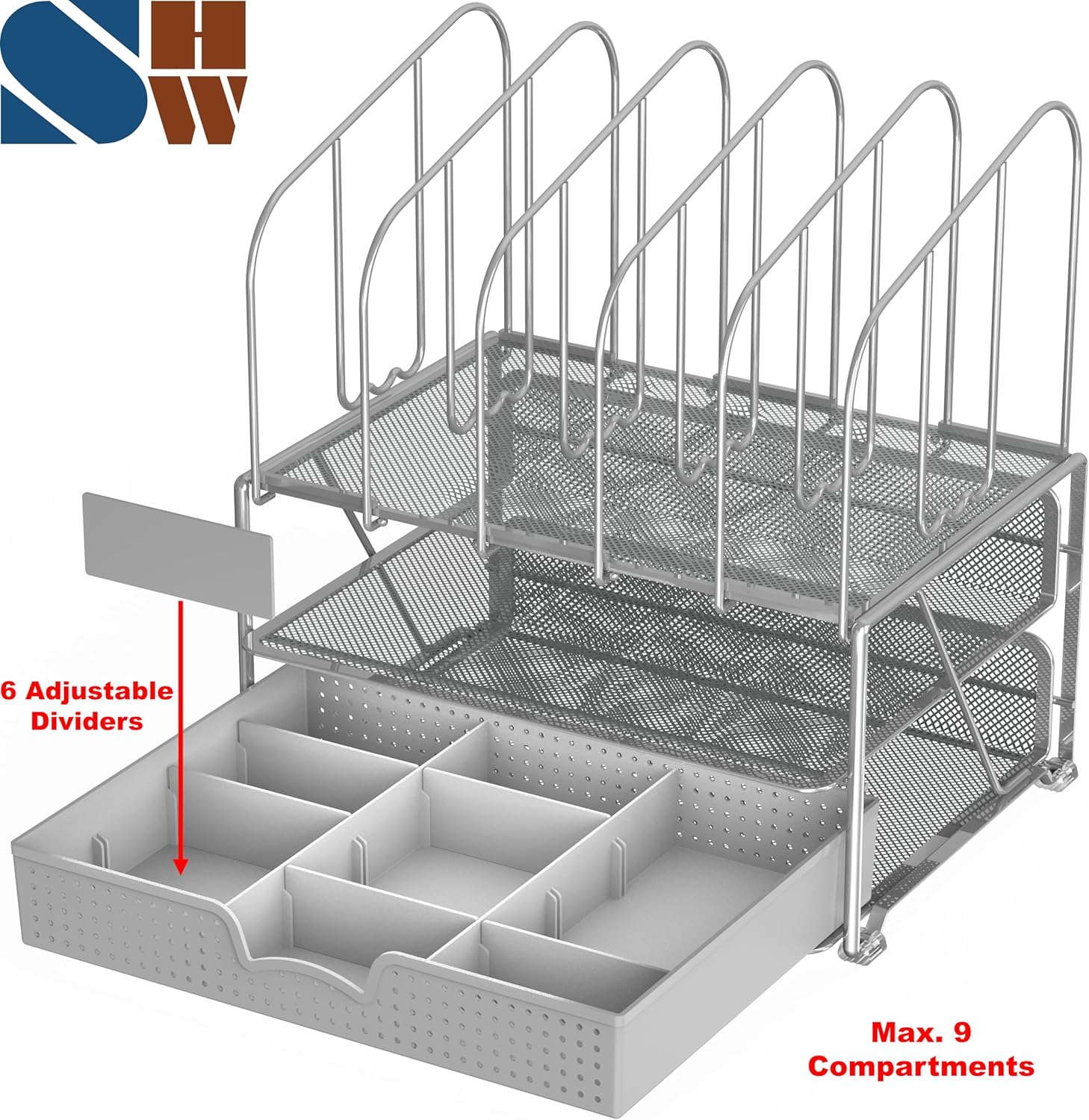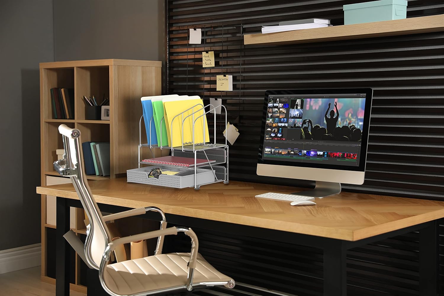 Deco Brothers Desk File Organizer with Letter Tray and 5 Upright File Stand, Silver