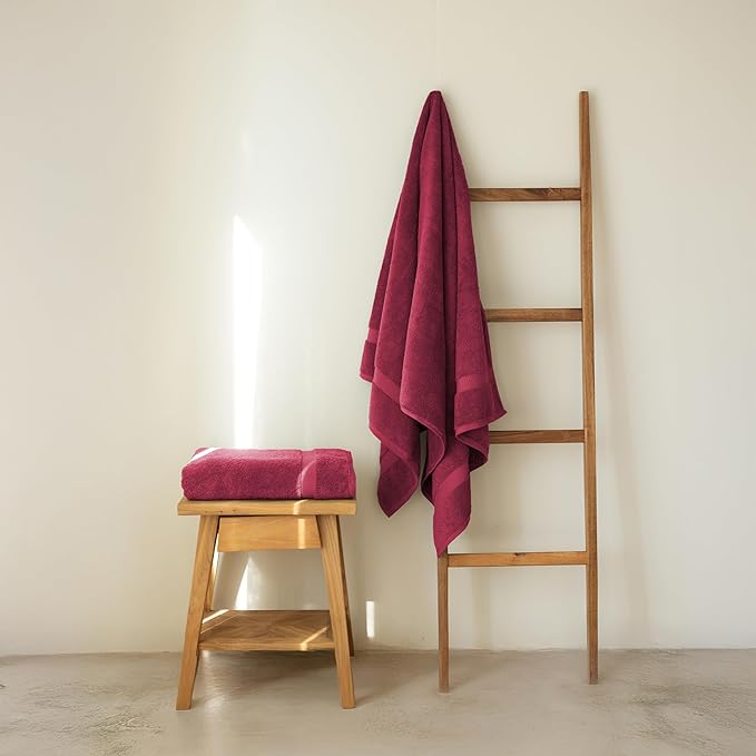SALBAKOS 100% Turkish Cotton Extra Large Bath Sheet Set of 2 35x70 inch | Heirloom Quality | Hotel & Spa Collection | Soft, Absorbent Oversize Bath Towels | Made in Turkey (Wine, 2 Bath Sheets)