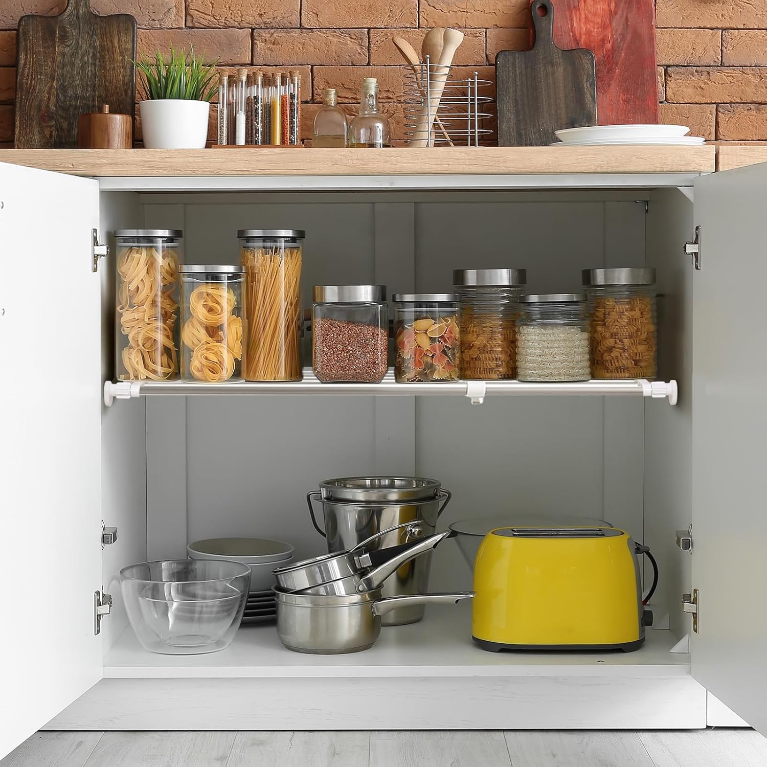 BAOYOUNI Tension Shelf Adjustable Closet Rod Space Saving Wardrobe Clothes Dividers Ivory, 33.07-46.26 Inches