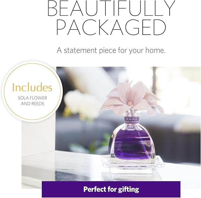 AGRARIA AirEssence Flower and Reed Diffuser Set, Handmade Sola Flower Botanical Home Fragrance Set, Scented Oil Reed Diffuser Gift for All Occasions