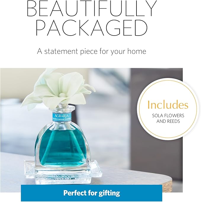 AGRARIA AirEssence Flower and Reed Diffuser Set, Handmade Sola Flower Botanical Home Fragrance Set, Scented Oil Reed Diffuser Gift for All Occasions