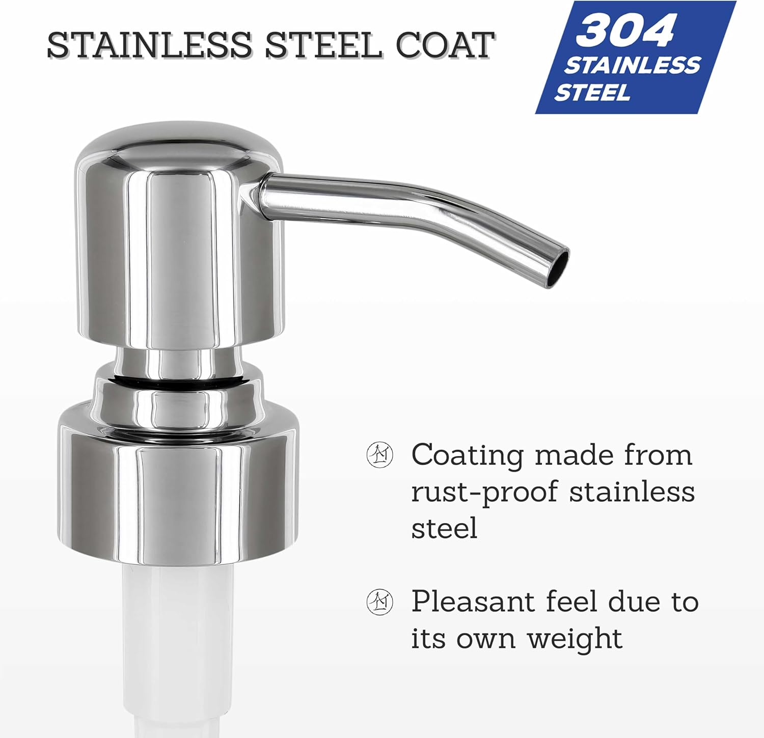 - 304 STAINLESS STEEL: Our dispenser pump heads are coated with durable 304 stainless steel, which makes them resistant to corrosion. Chose from a variety of colors to match the style of your bathroom.