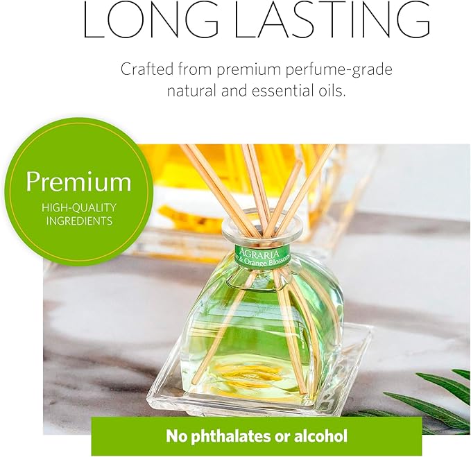 - Long Lasting: Unlike many scented oil flower and reed diffuser sets with high alcohol content that evaporates faster, Agraria’s AirEssence and PetiteEssence oil reed diffuser set is made with high quality perfume-grade oil fragrances that last 6-12 months