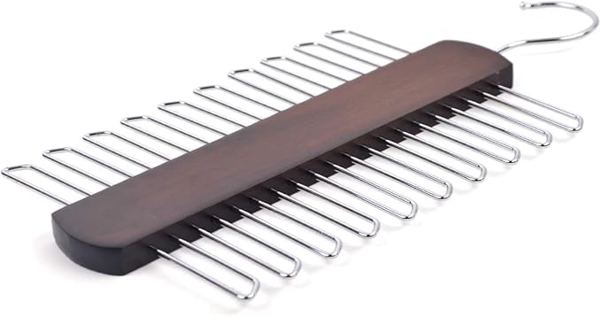 - DURABLE: The high quality finish of the tie rack's wood will not disappoint. The smooth finish to the dark walnut wood adds an added elegance to show off your tie collection. The tie holder will look fantastic in your closet.