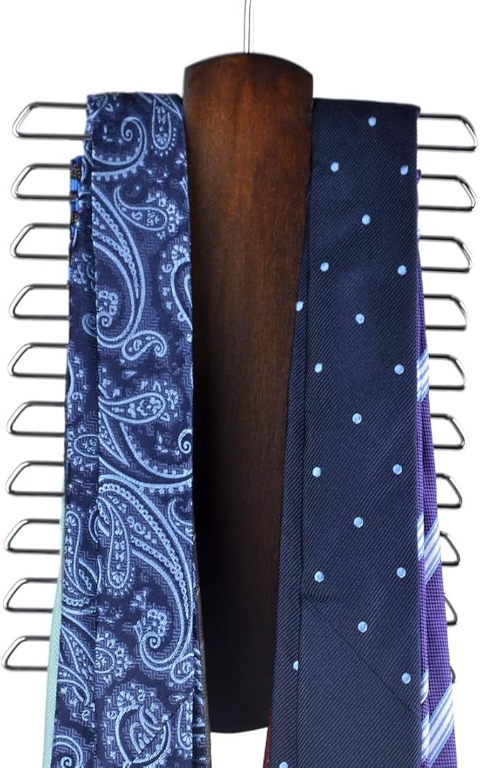 - EASY: With 20 chrome steel hooks every tie is accessible at every angle. No need to struggle with moving the hangers around to find your tie. With a rotating top hook that provides 360 degrees of access the perfect tie awaits!