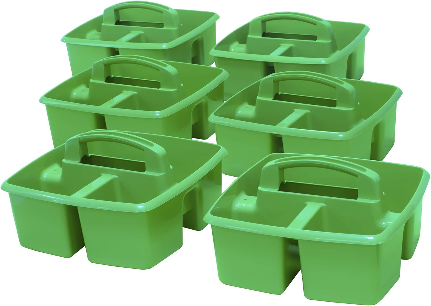 Storex 3-Compartment Small Caddy – Multipurpose Classroom Organizer with Handle, Green, 5-Pack (00951U06C)