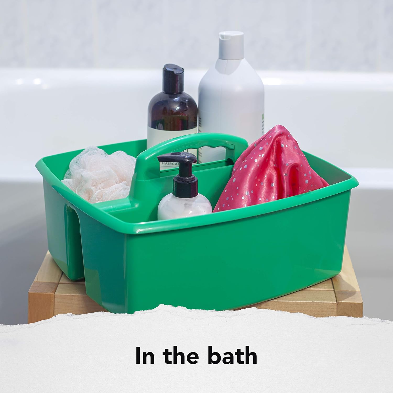Storex 2-Compartment Large Caddy – Multipurpose Classroom Organizer with Handle, Green, (00956U06C) (Pack of 6)