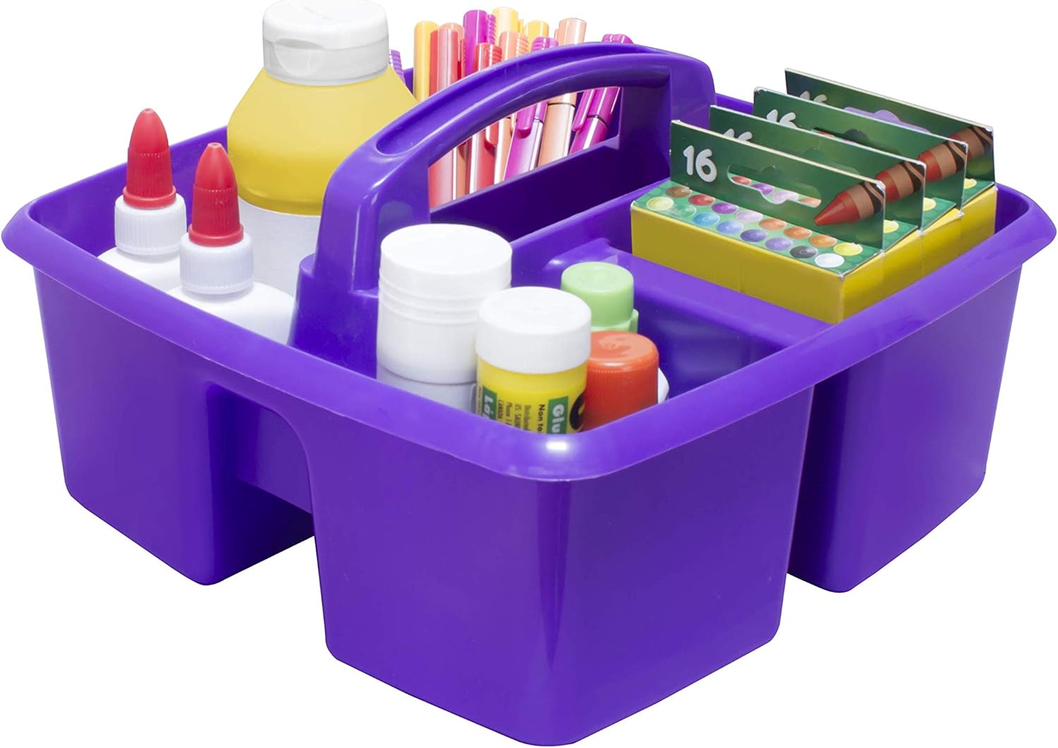 Storex 3-Compartment Small Caddy – Multipurpose Classroom Organizer with Handle, Purple, 5-Pack (00944U06C)