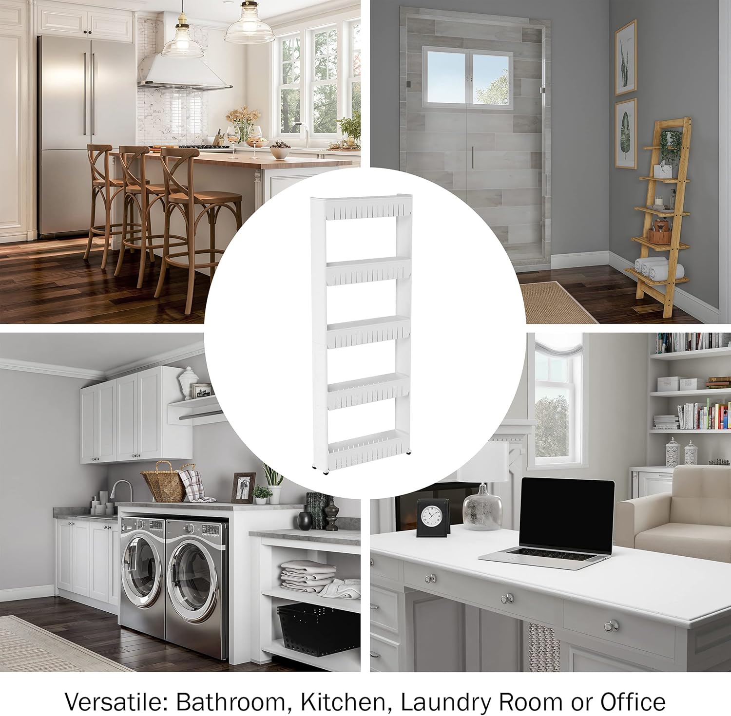 Slim Rolling Storage Cart - 5-Tier Utility Cart with Wheels for Bathroom, Kitchen, and Laundry Room - Bathroom Shelves by Lavish Home (White)