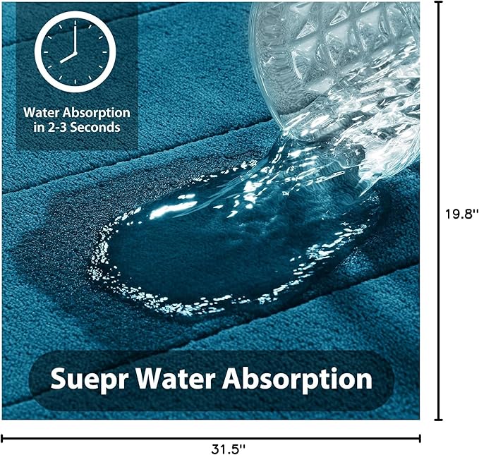 Yimobra Memory Foam Bath Mat, Super Soft Absorbent Bathroom Rug Non Slip 31.5x20 Inch, Quick Dry, Machine Washable Floor Carpet for Tub Shower, Home Decor Accessories, Peacock Blue