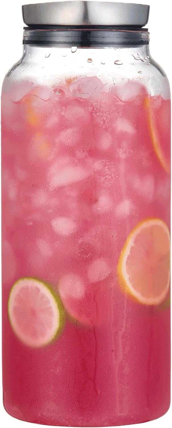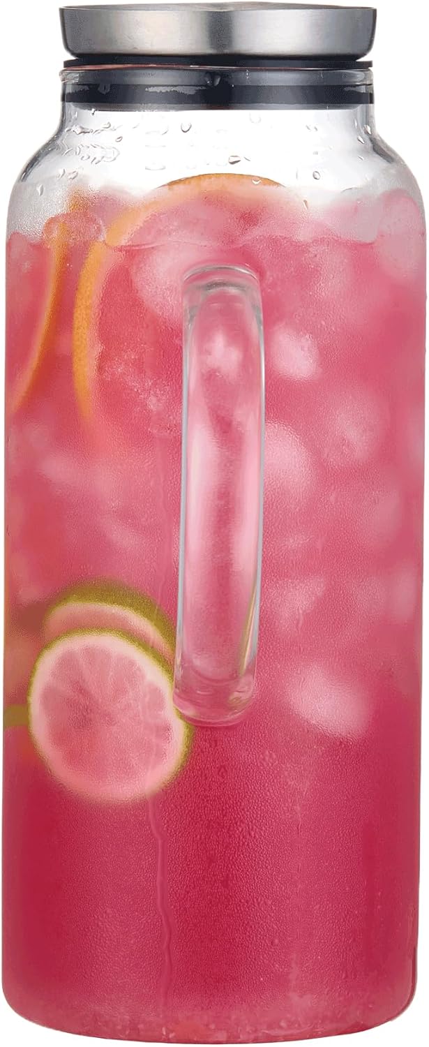 - [Heat-Resistant Borosilicate Glass] The jug is made of lead-free borosilicate glass. It has a large capacity of 68 oz which helps serve families or guests.