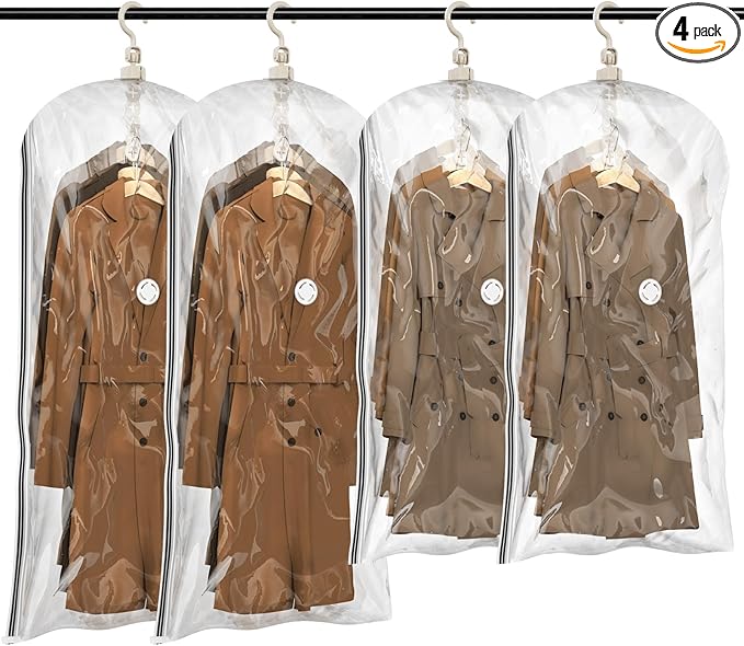 TAILI Hanging Vacuum Storage Sealer Bags Space Saver Bag for Clothing, Suits and Jackets, Closet Organizers, Travel, Set of 4 (2 Long, 2 Short), Clear