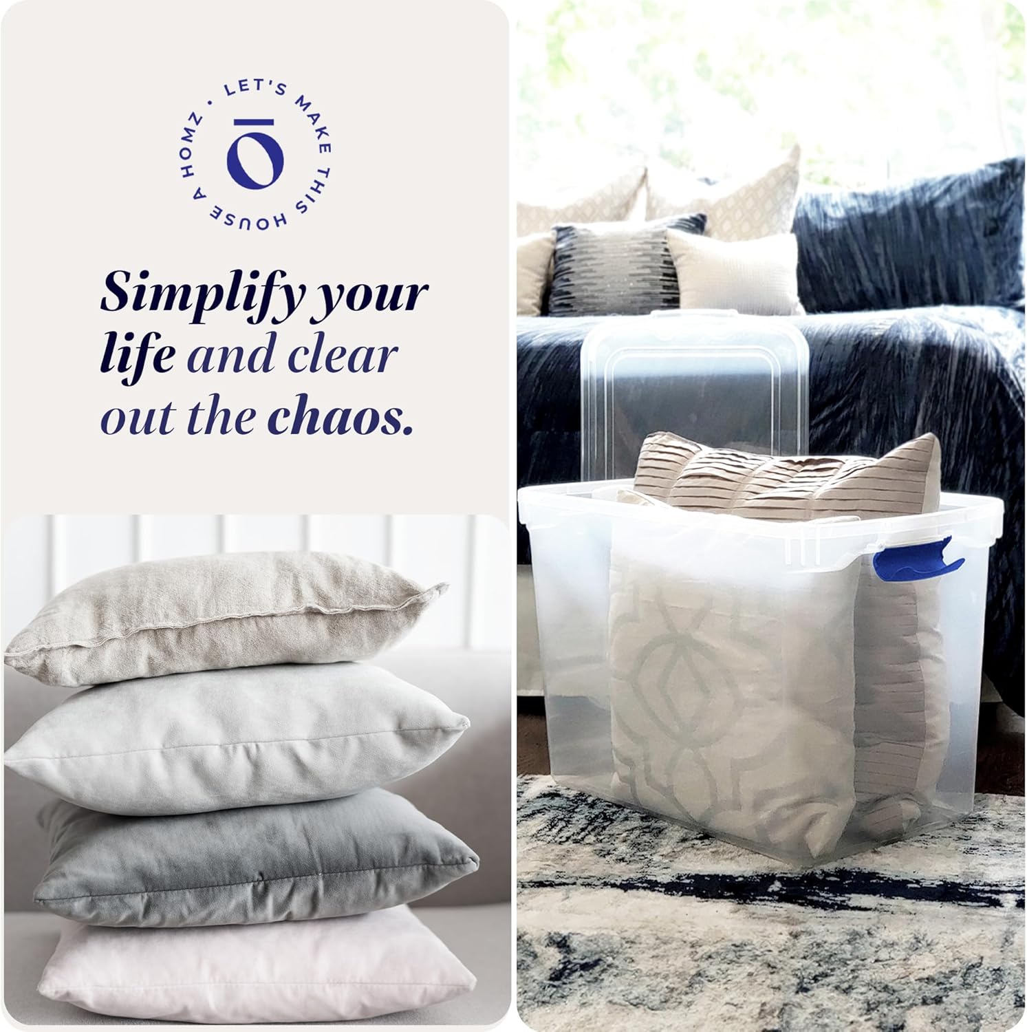 HOMZ 2-Pack Latching Lid, Clear Plastic Storage Organizer Bins, 112 Quart, Blue Latch - Stackable Organizing Containers for Home, Garage, and Office