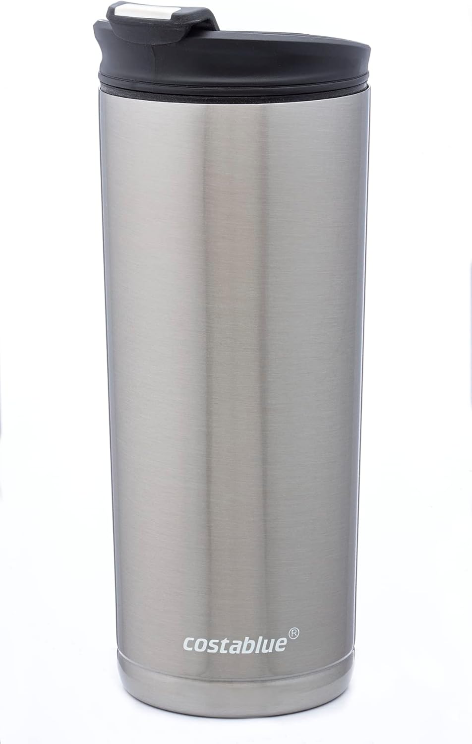 - INSULATED MUG: The Costablue insulated coffee tumbler is made with a double-wall vacuum insulated stainless steel to keep your beverages cool or warm for a long time. This coffee travel mug keeps your drinks hot for 3 hours and cold for 8 hours.