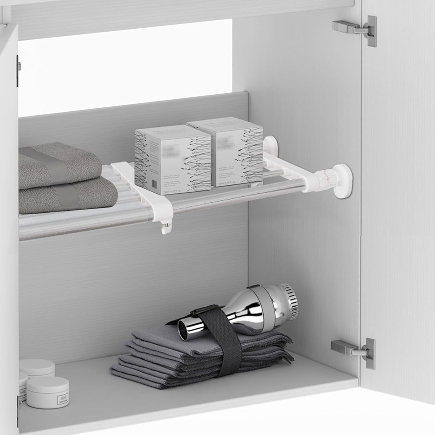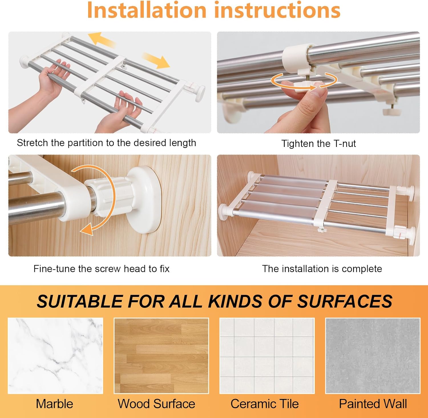 - ❀ Easy to install: No tools needed, no damage to your decorative wall, adjustment to the length you want within the expandable range, just select strong sides ,such as tiles, walls, wardrobes, shoe racks, cabinets, refrigerator, bookcase compartment.