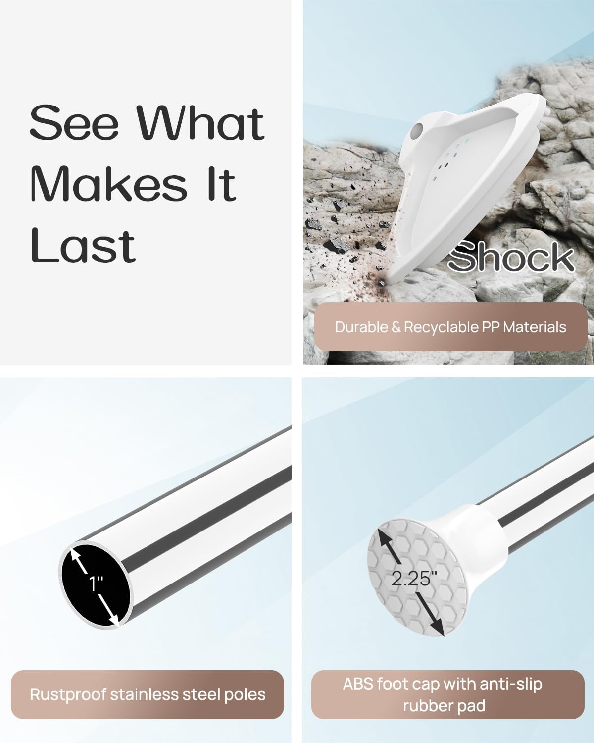 - 【 Fit Most Showers-Not for drop or slope ceiling】- The package comes with adjustable pole for you to adjust the height, no need to bother you to cut the rod, you can place this shower caddy on any height as described 34 to 116 Inch. With this shower shelf organizer, you always have all of your bathroom accessories right within easy reach when you're in the shower in any bathroom