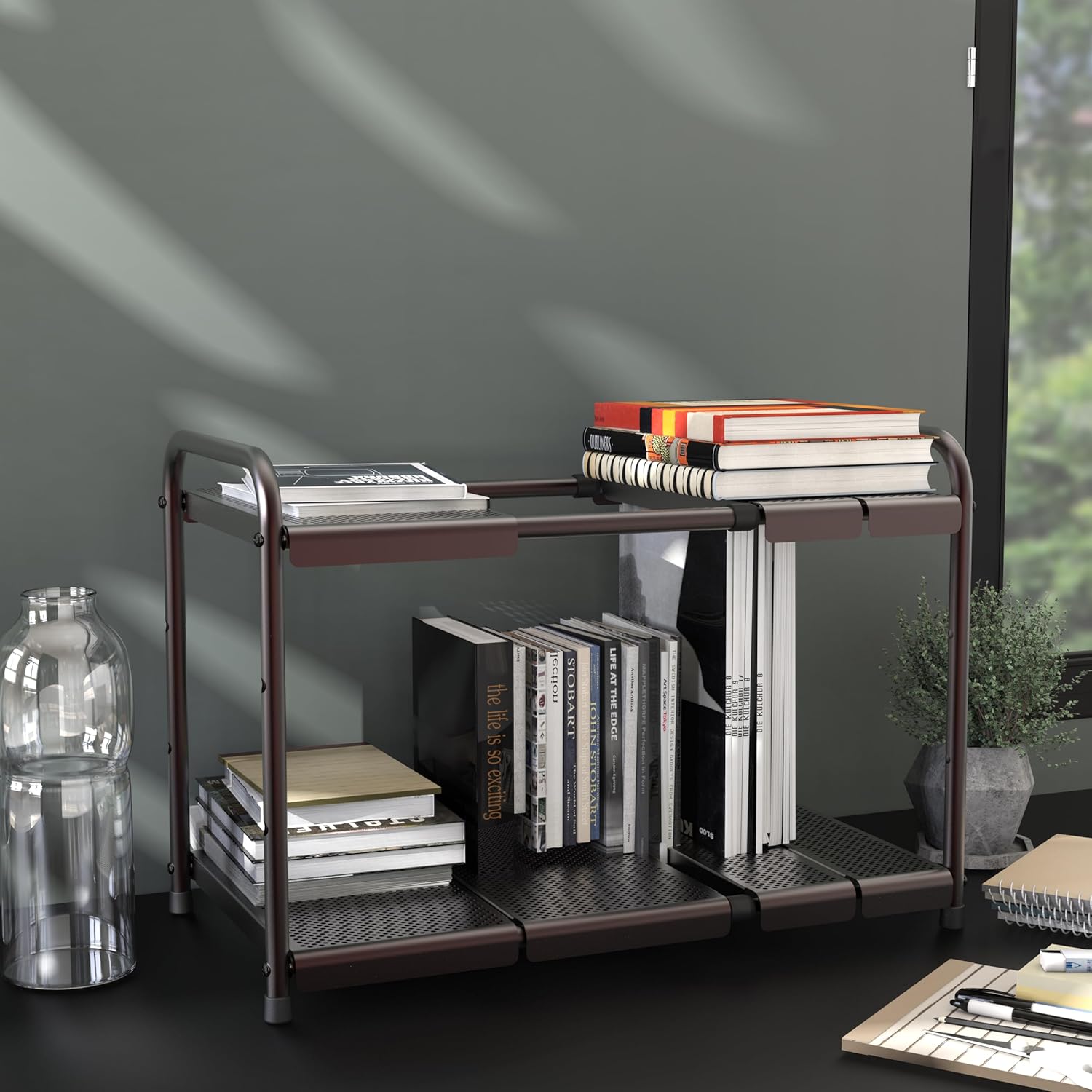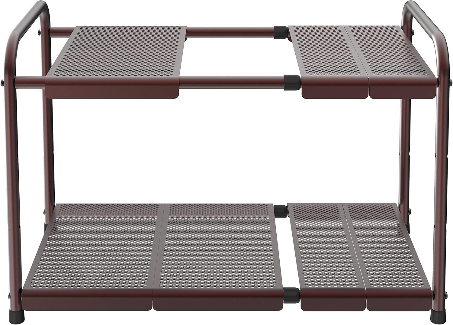 Simple Houseware Under Sink 2 Tier Expandable Heavy Duty Metal Shelf Organizer Rack, Bronze (Expand from 15 to 25 inches)