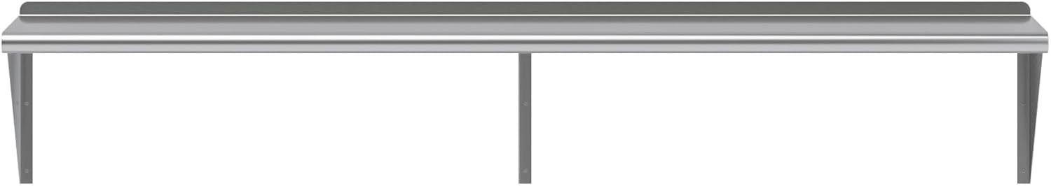 - 14 in. x 72 in. Stainless Steel Wall Shelf with 12 in. High Mounting Brackets. This heavy-duty multifunctional stainless wall shelf is made with 18 gauge stainless steel and can hold up to 350 Lbs of weight. The design features a 1 in. backsplash and bullnose edge. It's made with durable welded corners and support brackets.