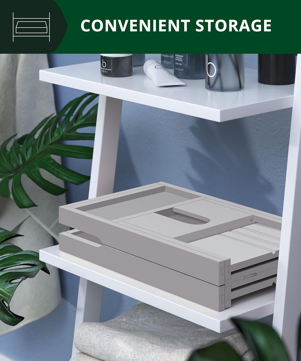 - ππππππππππ πππ-ππππ πππππ: What better way to relax after a long day at work or a stressful day running after kids than to relax & unwind with well deserved me-time? Bring the spa experience home as you enjoy a peaceful, quiet bath with all of your favorite accessories right beside you. Place a soothing candle in the convenient holder, sip wine and keep it safe from falling into the tub with a built-in wine glass slot, and enjoy a good book, all with the help of the foldable caddy tray for tub.
