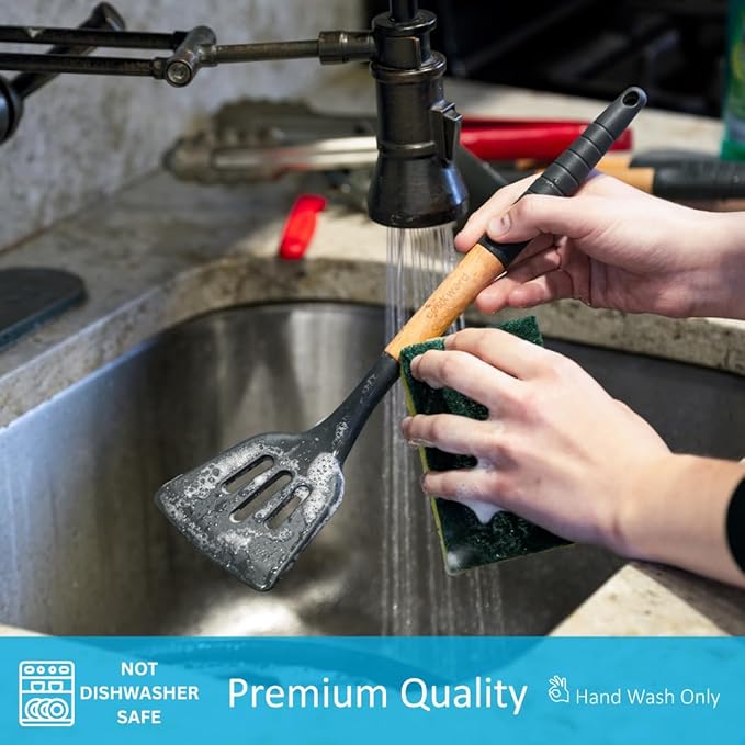 - ECO-FRIENDLY MATERIALS:The Cookward kitchen tools are the perfect alternative to plastic. They are made with eco-friendly silicone and natural wood that are safe for the environment and your health, and easily sustainable.