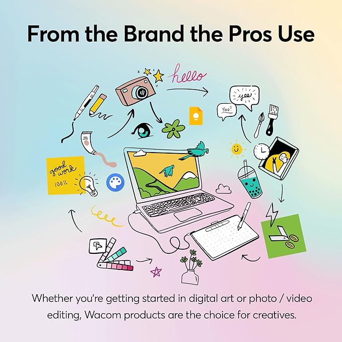 - Works With All Software: Wacom Intuos tablet can be used in any software program to explore new facets of digital creativity; draw, paint, edit photos/videos, create designs, and mark up documents