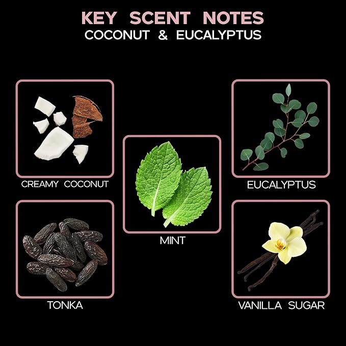 - Scent : Aromatherapy, Coconut & Eucalyptus, Fresh, Herbal, Scented