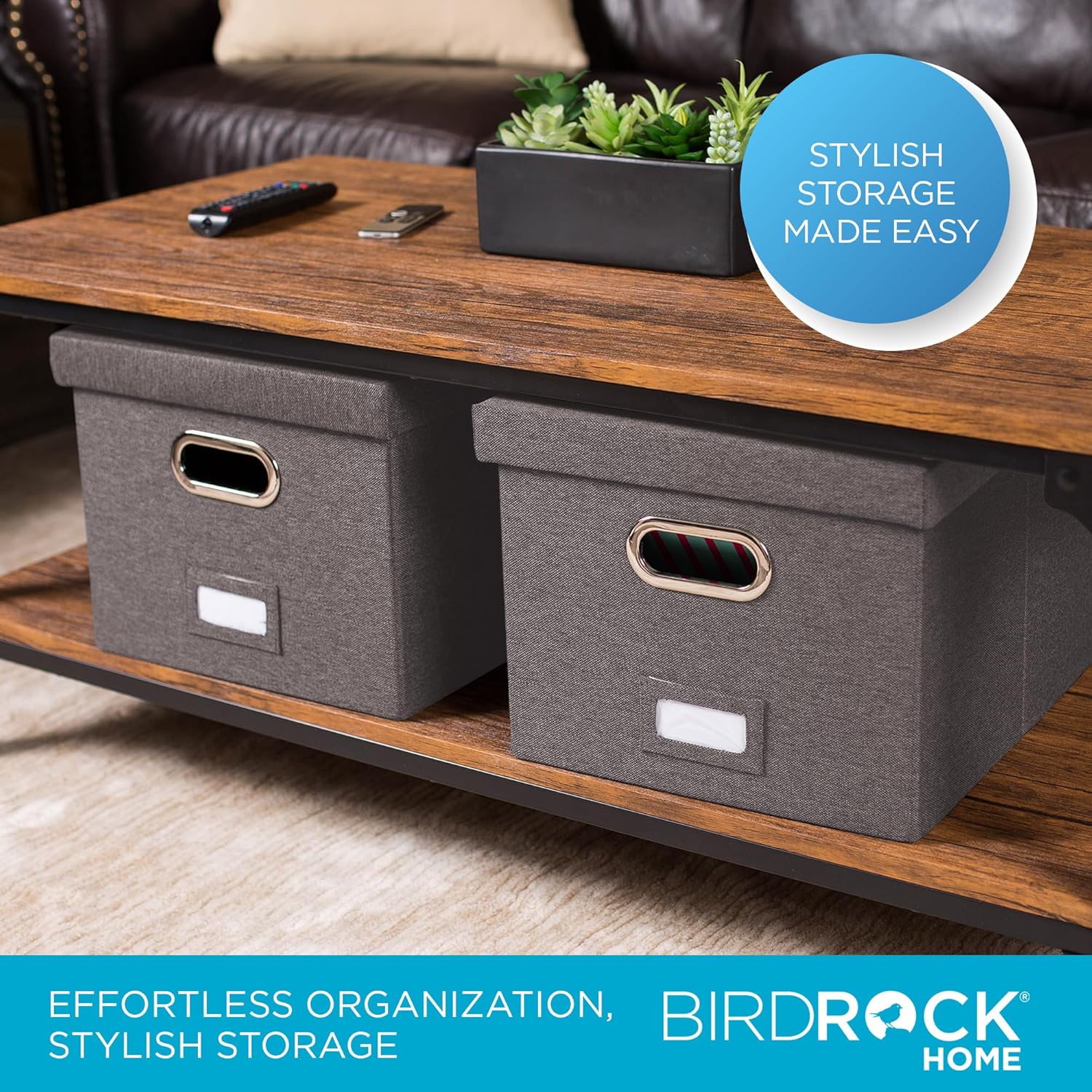 Internet's Best Collapsible File Storage Organizer with Lid - Decorative Linen Filing & Storage Office Box – Hanging Letter/Legal Folder – Home Office Bins Cabinet – Grey Container - 2 Pack