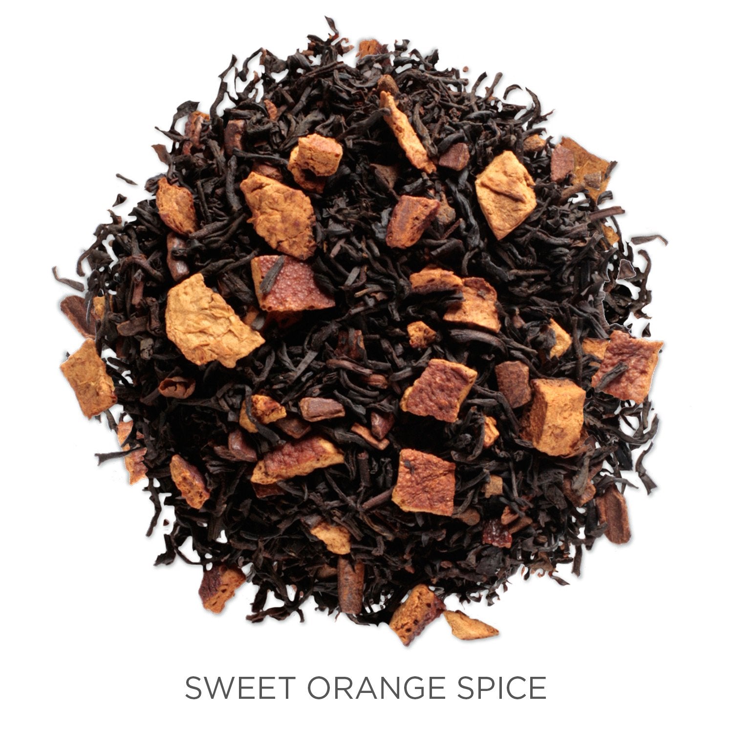 - SWEET ORANGE SPICE - A bold black tea brimming with baking spice and orange flavors.