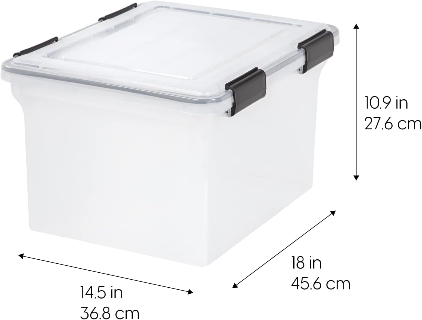 - WEATHERPRO: This Letter & Legal Size Plastic Water Resistant Document Storage Box has high quality heavy duty seals in the lids to preserve and protect contents. The storage bin creates a vacuum-like environment inside blocking out moisture and dust.
