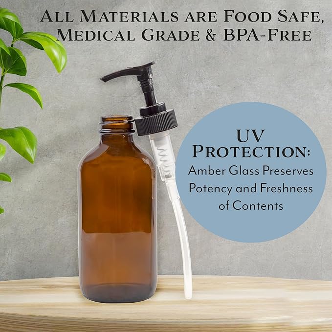 - Safe & Durable: Food-safe, lead-free glass with BPA-free pump tops; tinted glass keeps contents protected from light damage.