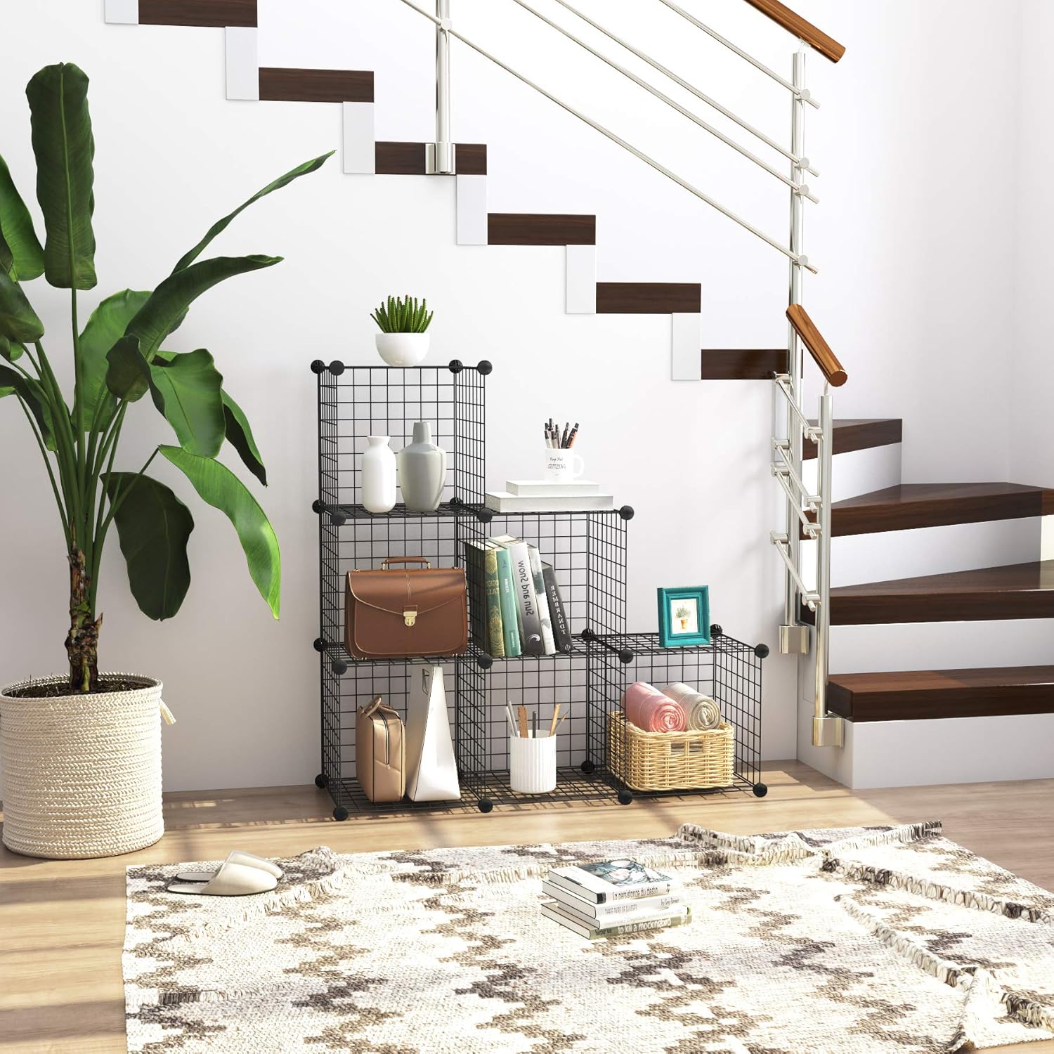 C&AHOME Wire Cube Storage, 6 - Cube Organizer Metal C Grids, Modular Shelves Units, Storage Bins Shelving, Closet Organizer, Ideal for Home, Office, Living Room, 36.6”L x 12.4”W x 36.6”H Black