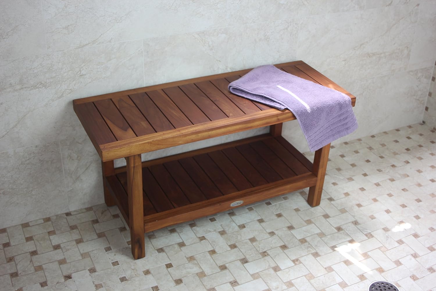 AquaTeak The Original 36" Spa Teak Shower Bench with Shelf & AquaTeak Premium Teak Oil