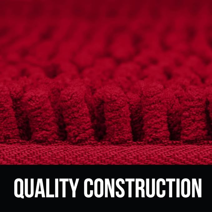 KANGAROO Bathroom Rugs, Chenille Soft Absorbent Bath Rug, Shaggy Shower Mat, Quick Dry Machine Wash Bathmat, Plush Carpet Mats for Tub, Bathtub and Room Home Decor Accessories, 30x20, Red
